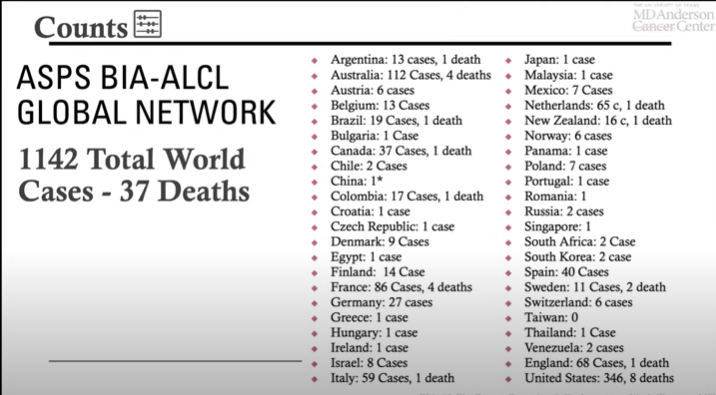 NOTE – Between June 2022 and August 2022 ASPS recognized an additional eleven cases of BIA-ALCL. If there are updated BIA-ALCL stats presented at the upcoming 2022 World Consensus Conference on bia-alcl I will update accordingly here. (Conference date: 30 September – 1 October 2022)