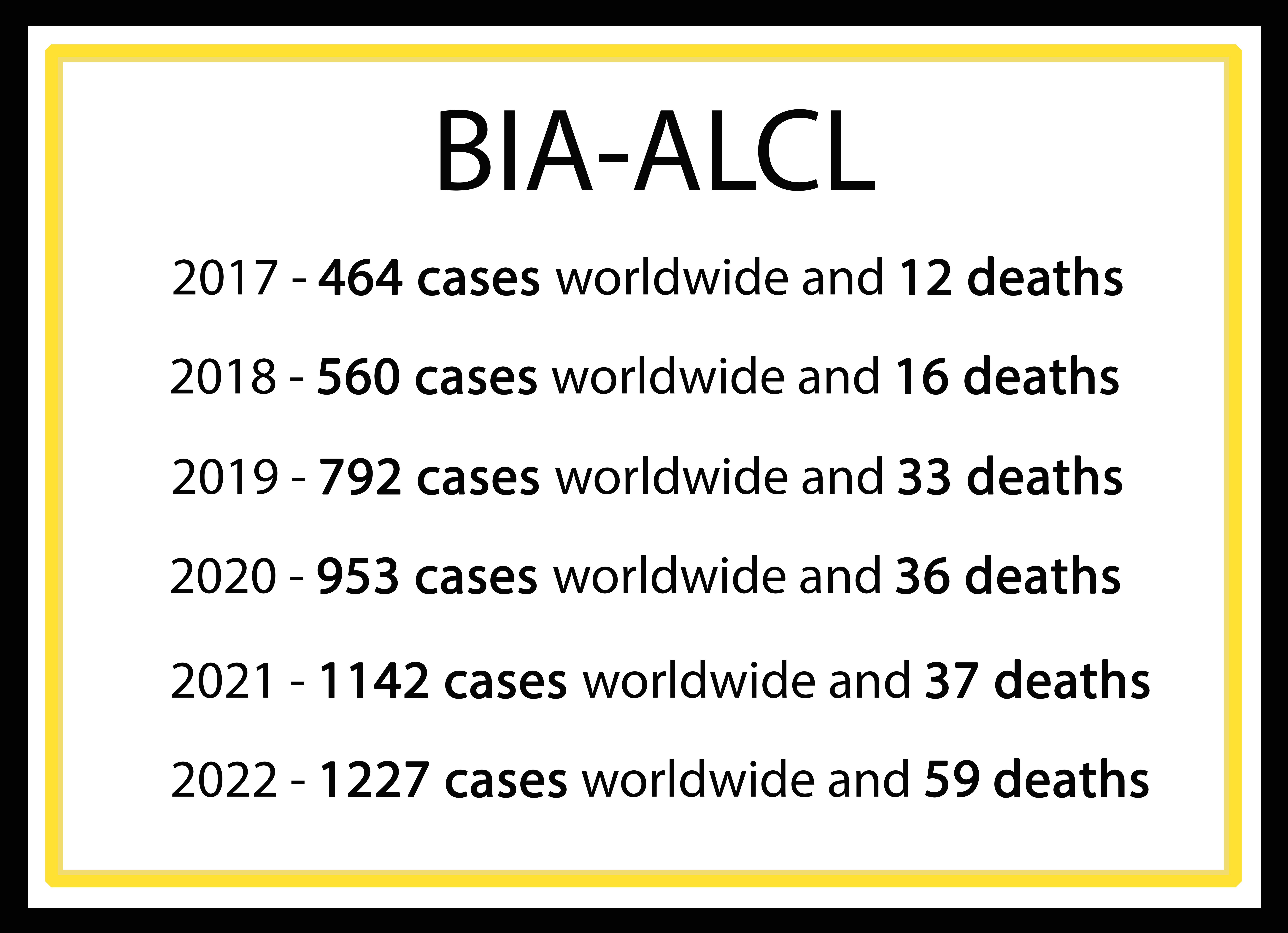 It should be noted that it’s suspected BIA-ALCL is under-diagnosed and under-reported, and that there have been many women that have died from BIA-ALCL without having been diagnosed. As more women are being tested there has been a significant spike in cases globally.