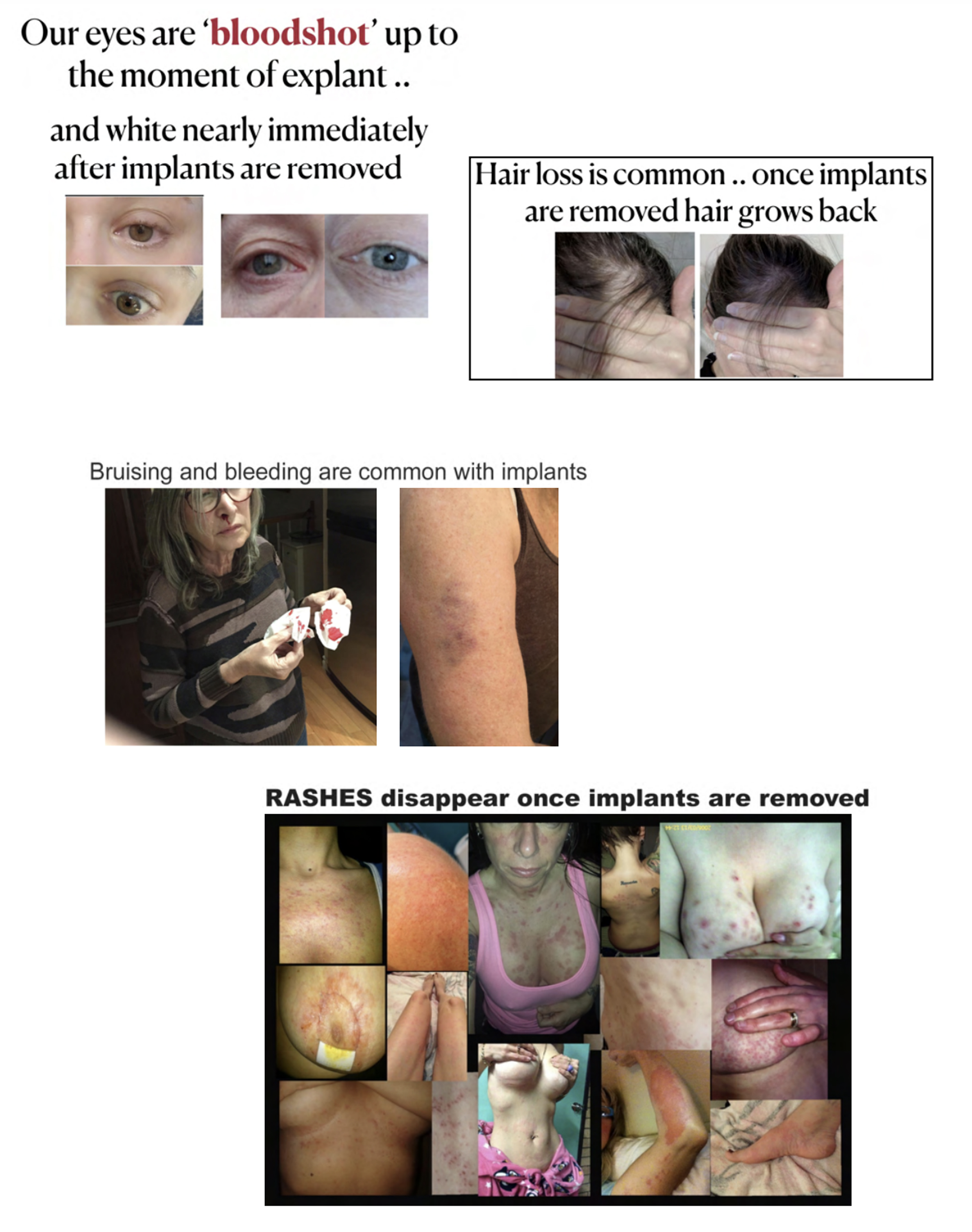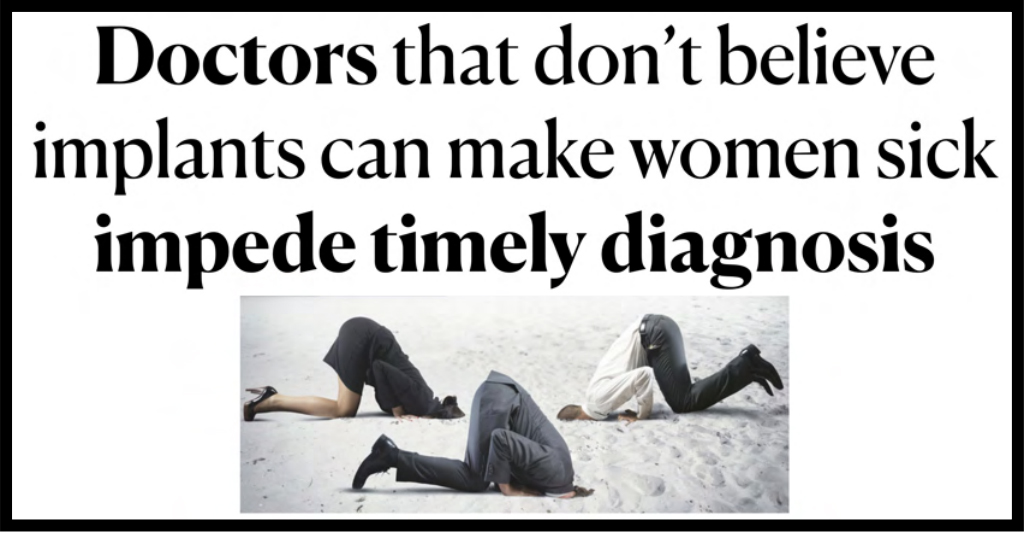 It is true that many women ‘connect the dots’ that their undiagnosed illness (which most have been told is in their head) is caused by their implants after joining online BII forums .. HOWEVER .. that is after being left without answers and/or accurate diagnosis from their doctors. They’ve been left to figure out what’s happening to them after being hung out to dry by the medical community. Most women are desperately ill and searching for answers when they join BII groups. Breast implant forums are NOT the problem. Doctors that have failed their patients are the problem.